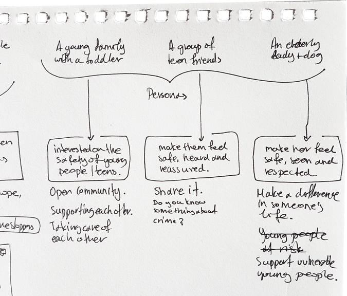 I started noting down information from the brief and the thoughts that generated. How do we encourage people who don’t trust the police, share information with the police?